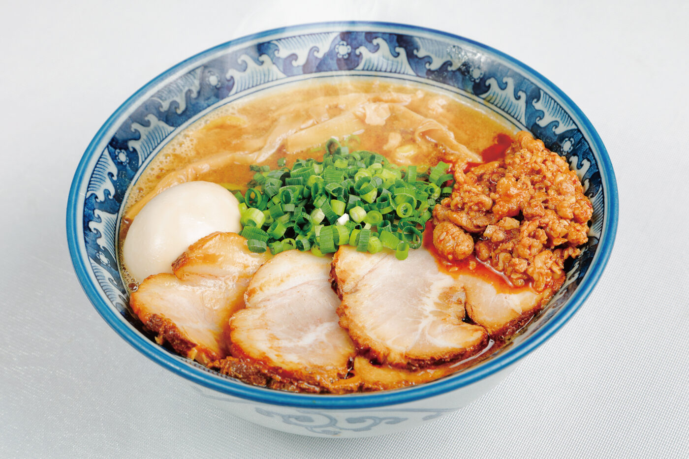鮮やかな辛口を特徴とする大豆の風味豊かな「安養寺みそ」が豚骨のまろやかなでやさしい甘味と香りに深みを与え上品な一杯に仕上がっています。
